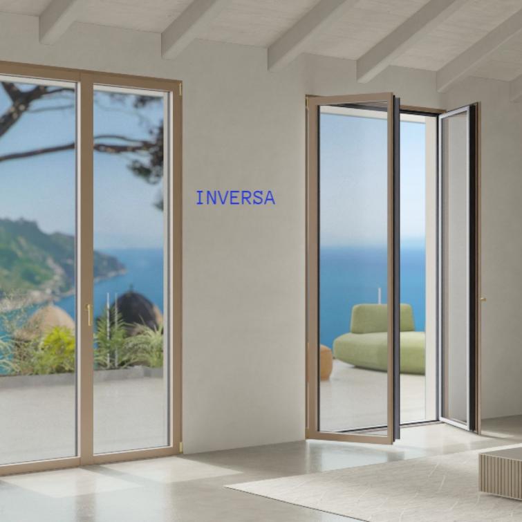 - La serie Inversa dalle forme ultra-minimali, consente maggior luminosità agli ambienti ed ha dalle prestazioni in materia di isolamento termico in linea con i parametri di legge richiesti. Inoltre è il primo serramento ibrido ad essere ideato e realizzato in Italia, avente un cuore di PVC e la struttura esterna in alluminio estruso.
