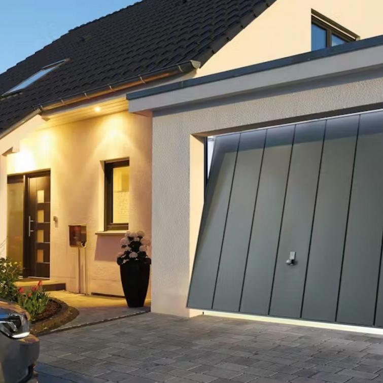I portoni sezionali Hörmann si aprono verticalmente e scorrono sotto il soffitto, permettendo di sfruttare al massimo lo spazio interno ed esterno del garage: questa tecnologia garantisce un passaggio più ampio rispetto ai tradizionali basculanti e una migliore tenuta contro freddo, pioggia e vento.